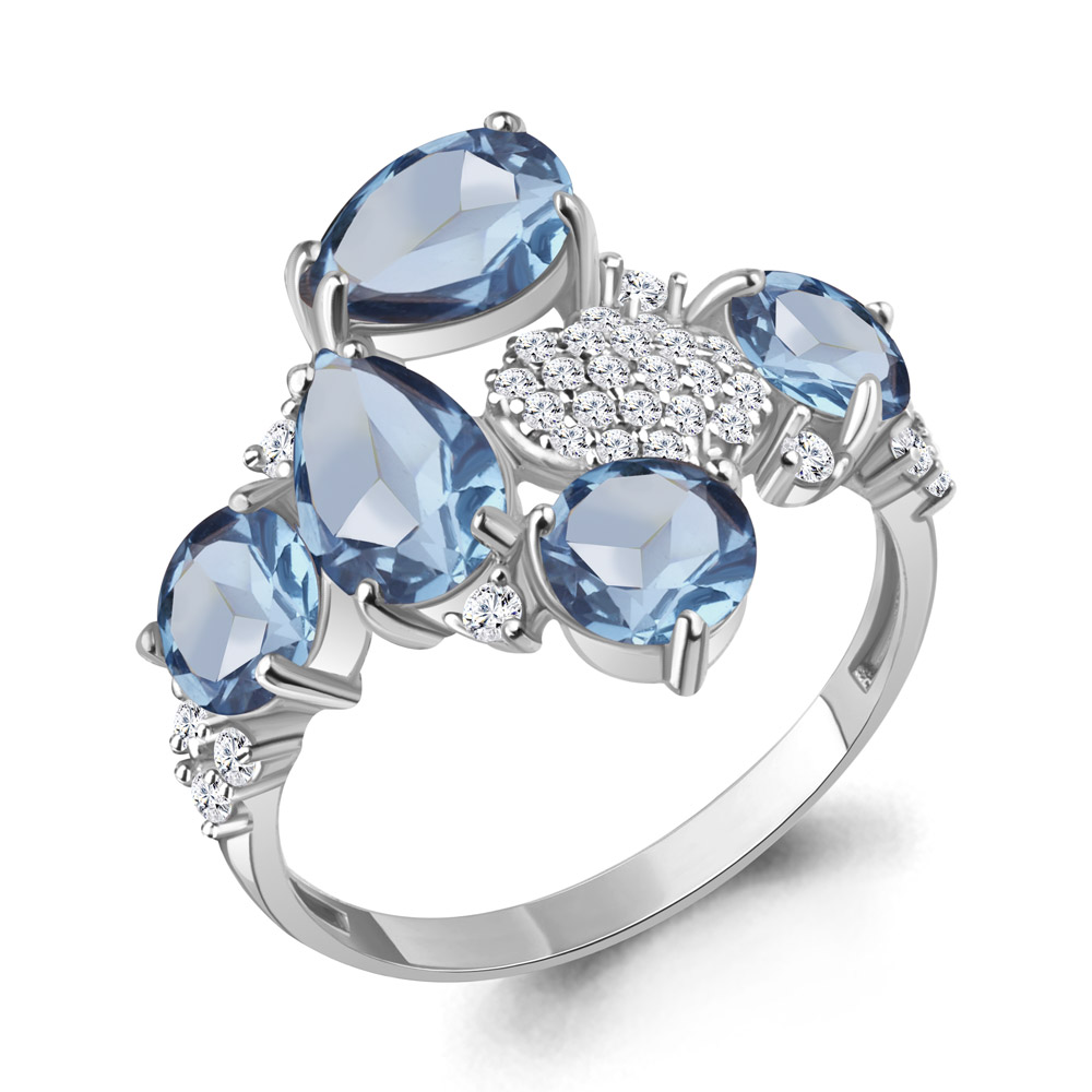 6905305А Кольцо из Золота с топазами свисс блю, фианитами из коллекции "Chicago"